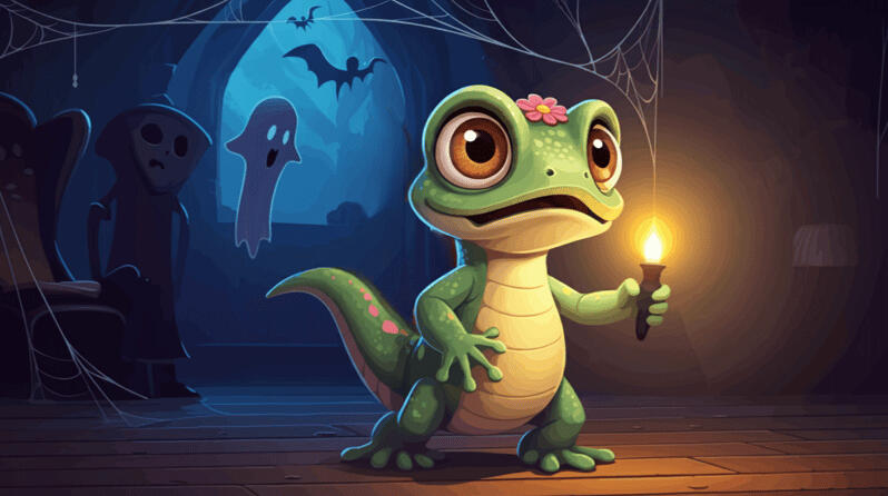 With a mix of excitement and curiosity, Wiggly Lizzie steps into the haunted house! Get ready to face the spooky surprises and giggle at the ghostly fun that awaits her!